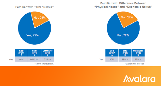 Of businesses surveyed in December 2020, 79% said they’re familiar with the term “nexus,” and 76% understand the difference between economic nexus and physical nexus. Small and mid-sized businesses were most aware: